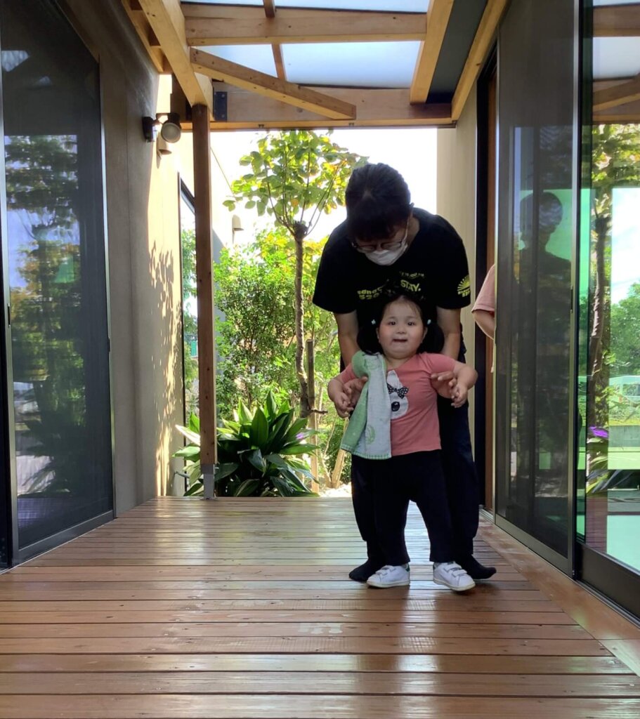 ウッドデッキをお散歩中です😊秋風が気持ちいい〜!