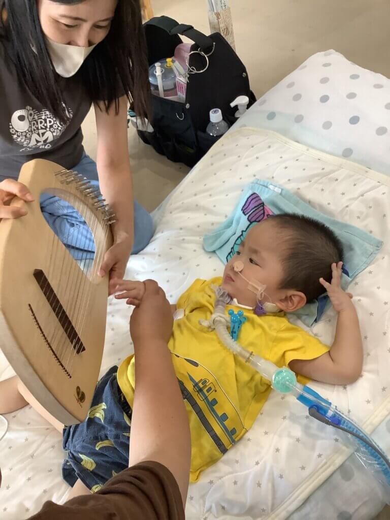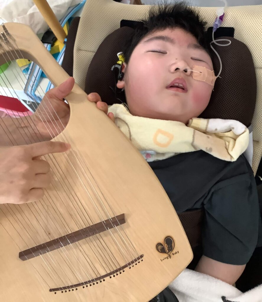 「ライアー」という楽器の音を聞いたり触れてみたり・・