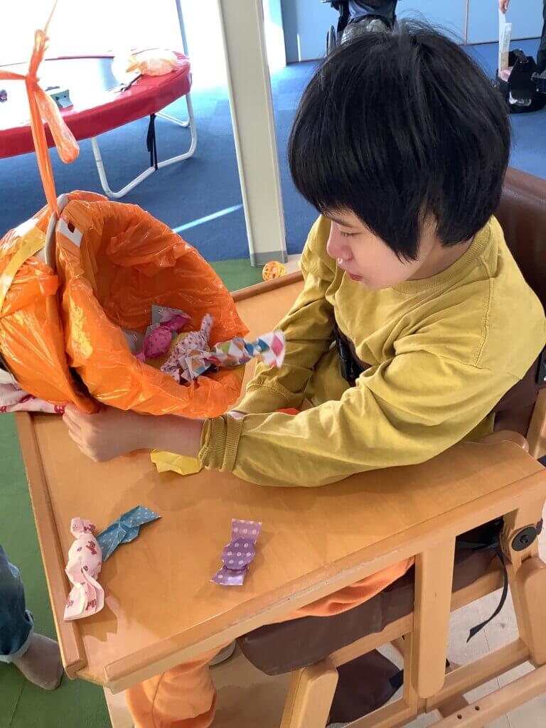 出てきたおかしは作ったハロウィンバックに入れます😄