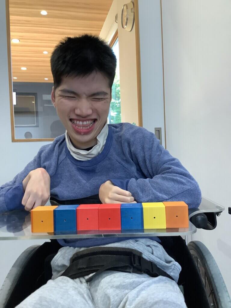 手先の動きのリハビリを兼ねての積み木遊びを行いました。