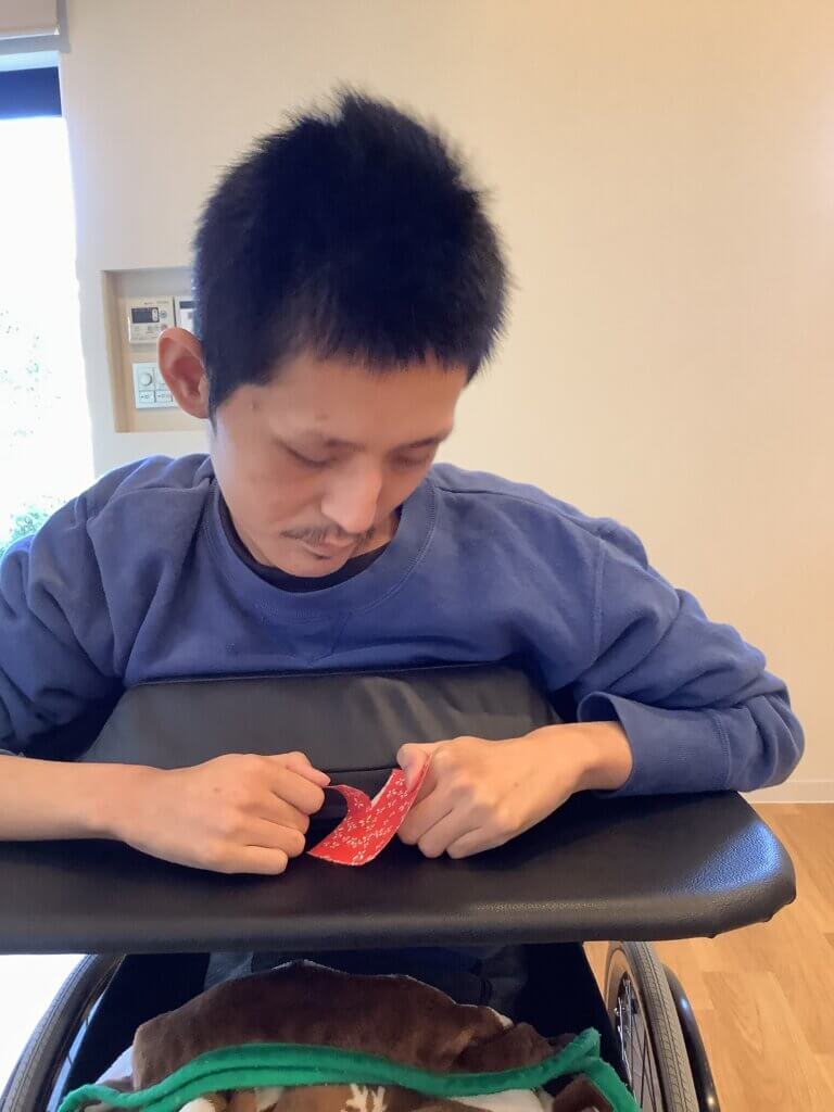 ゆっくりと自分の思った大きさになるようにちぎっていきます✂