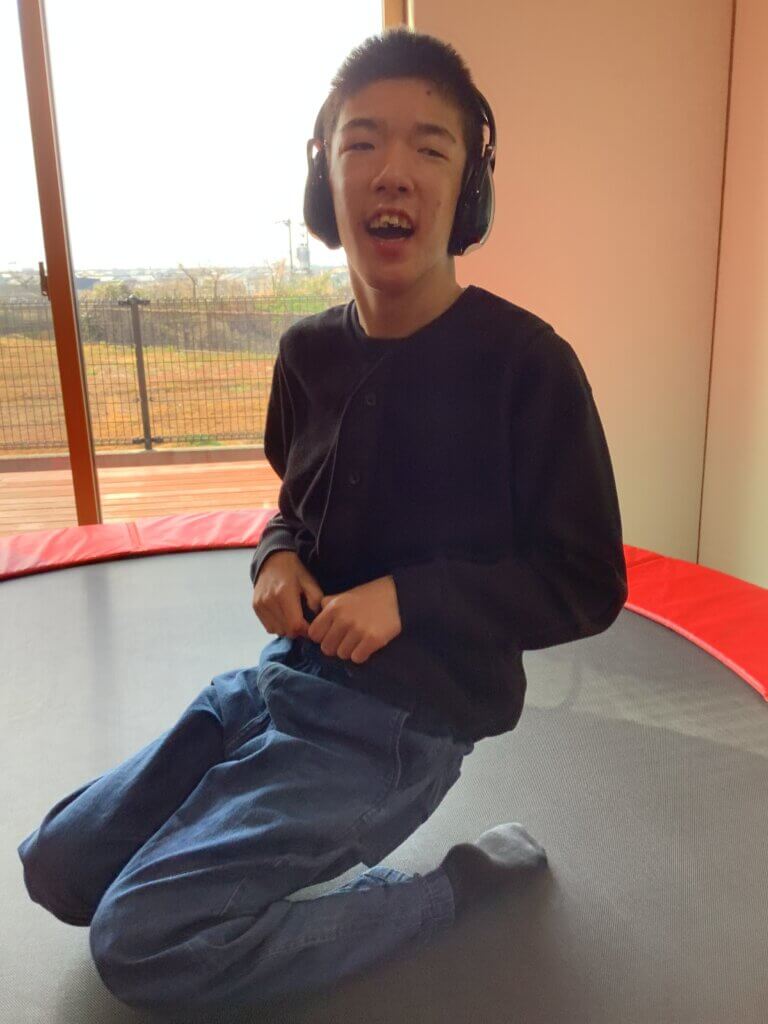 「トントント~ン!」元気に自分でトランポリンを飛び跳ねて遊びました😊